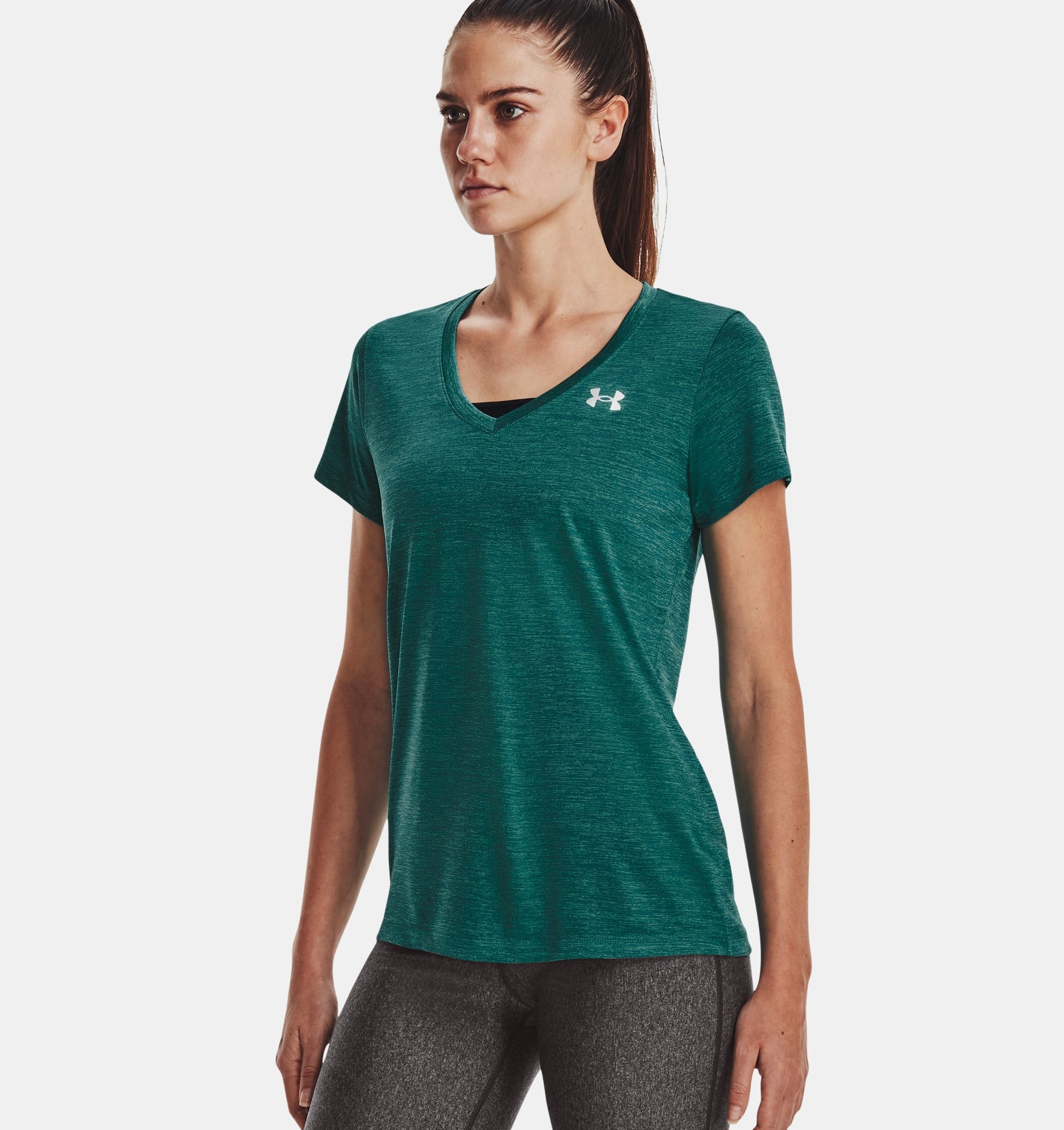 The Under Armour women’s UA Twisted Tech V-neck T-shirt is loose, light, and it keeps you cool. It’s part of our original go-to training gear, and it’s everything you need.